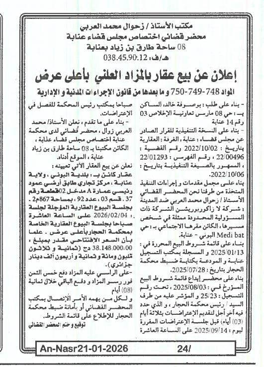 | Paru dans le journal : النصر | |