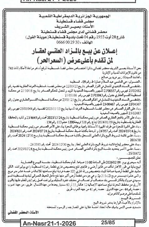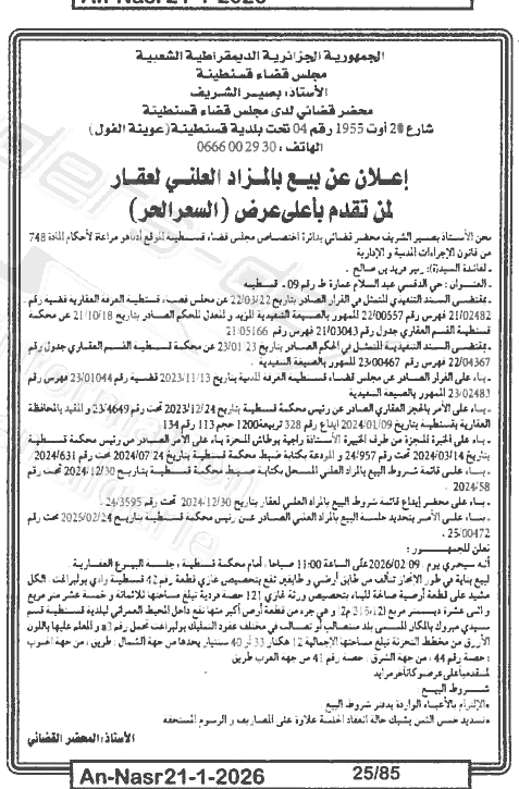 Il sera procédé à la vente au plus offrant et dernier enchérisseur le :