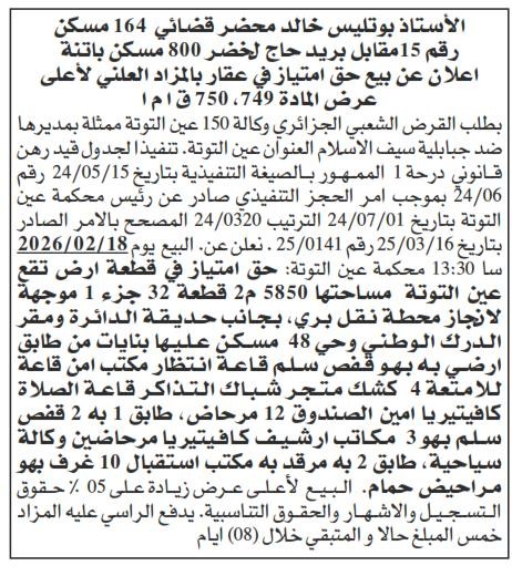 Il sera procédé à la vente au plus offrant et dernier enchérisseur le :
