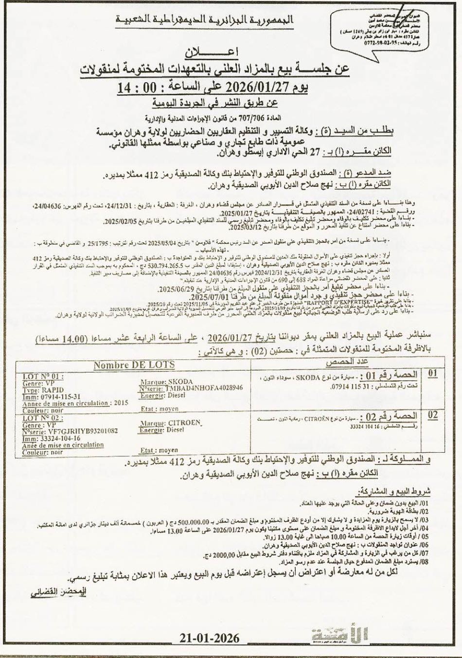 Il sera procédé à la vente au plus offrant et dernier enchérisseur le :