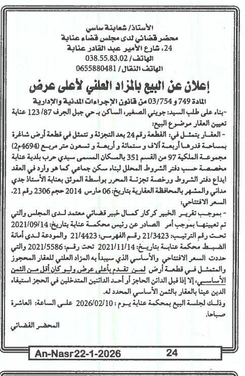 Paru dans le journal : النصر