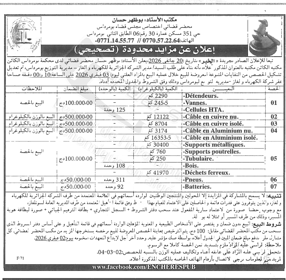 Il sera procédé à la vente au plus offrant et dernier enchérisseur le :