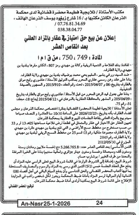 | Paru dans le journal : النصر | |