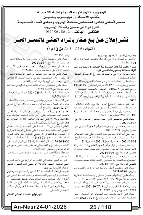 Il sera procédé à la vente au plus offrant et dernier enchérisseur le : 31/01/2026';