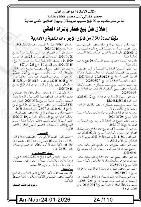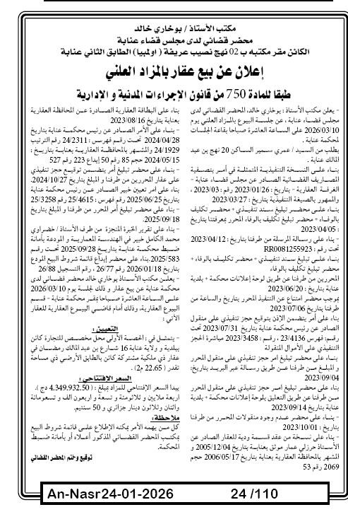 Paru dans le journal : النصر