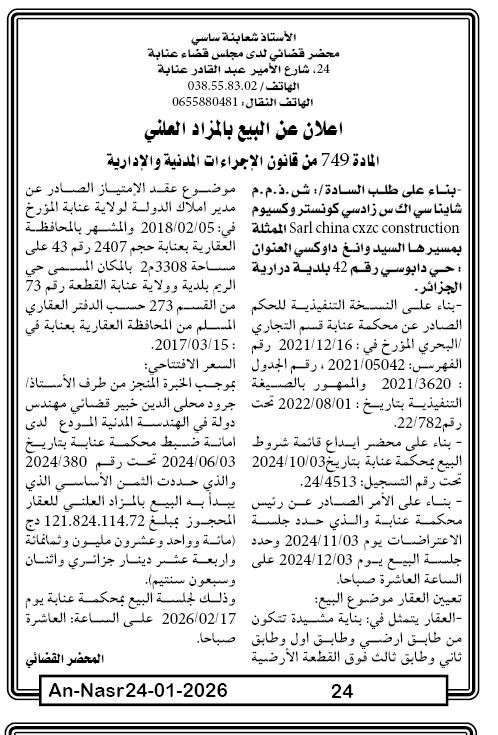 Il sera procédé à la vente au plus offrant et dernier enchérisseur le :