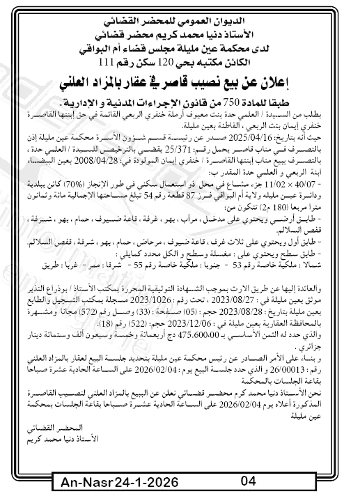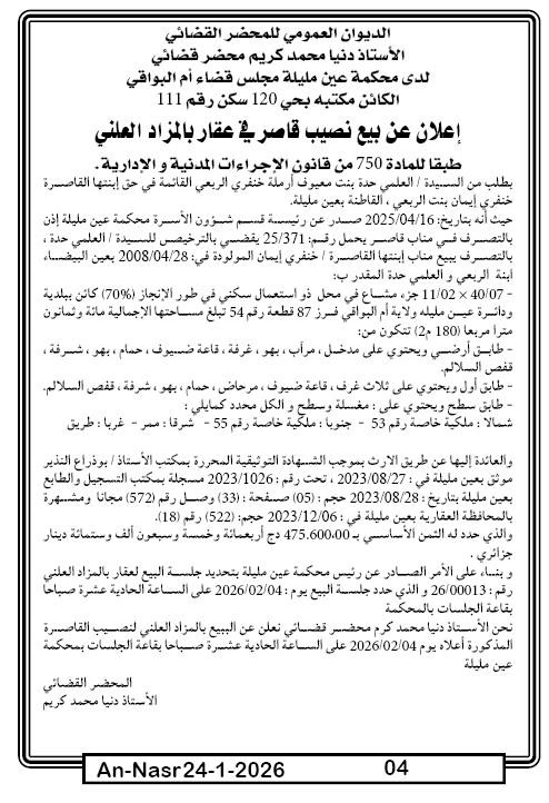 | Paru dans le journal : النصر | |