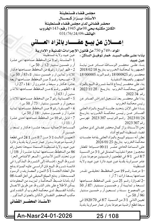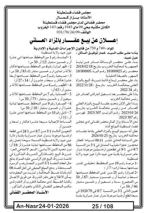 Il sera procédé à la vente au plus offrant et dernier enchérisseur le : 31/01/2026';