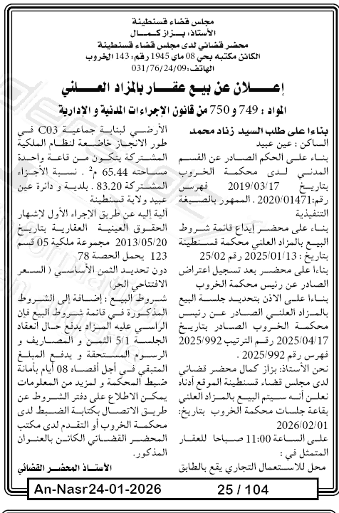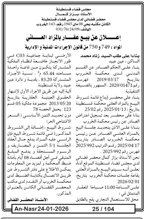 Il sera procédé à la vente au plus offrant et dernier enchérisseur le : 31/01/2026';