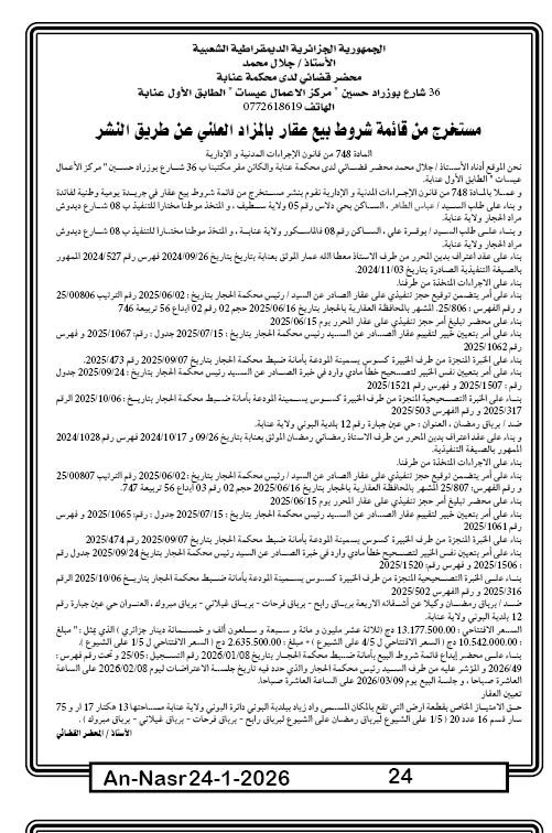 Il sera procédé à la vente au plus offrant et dernier enchérisseur le : 31/01/2026';