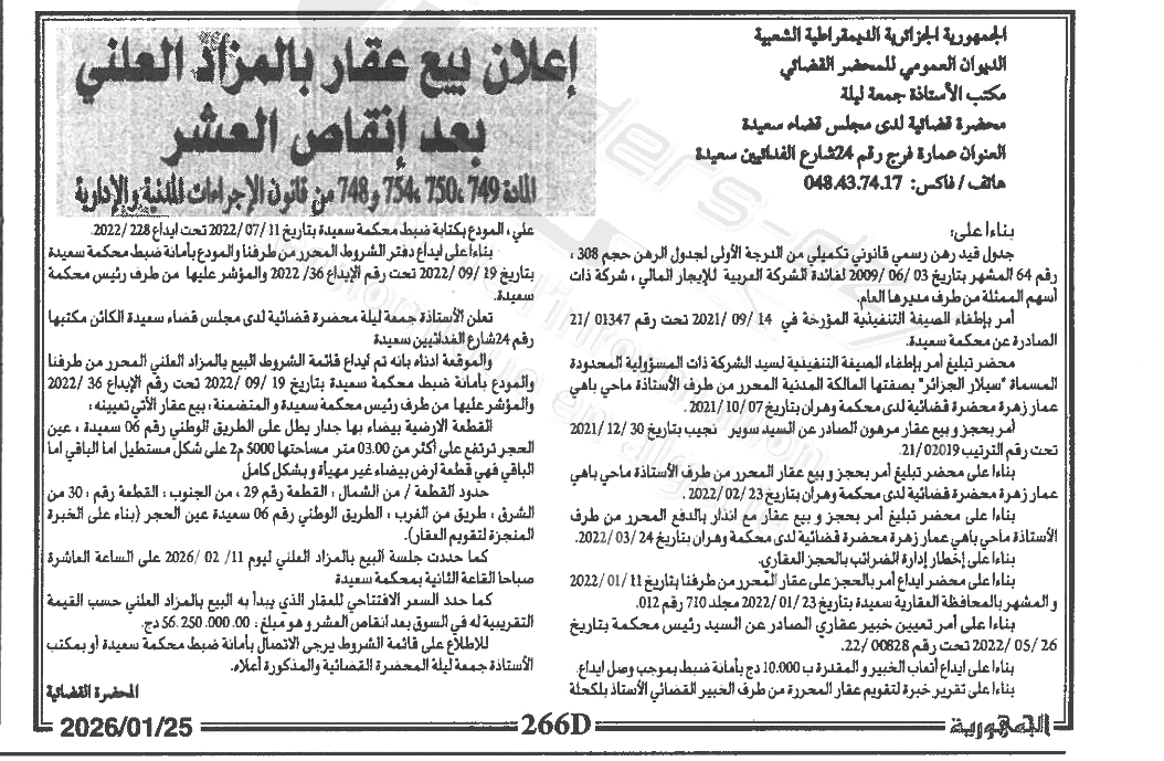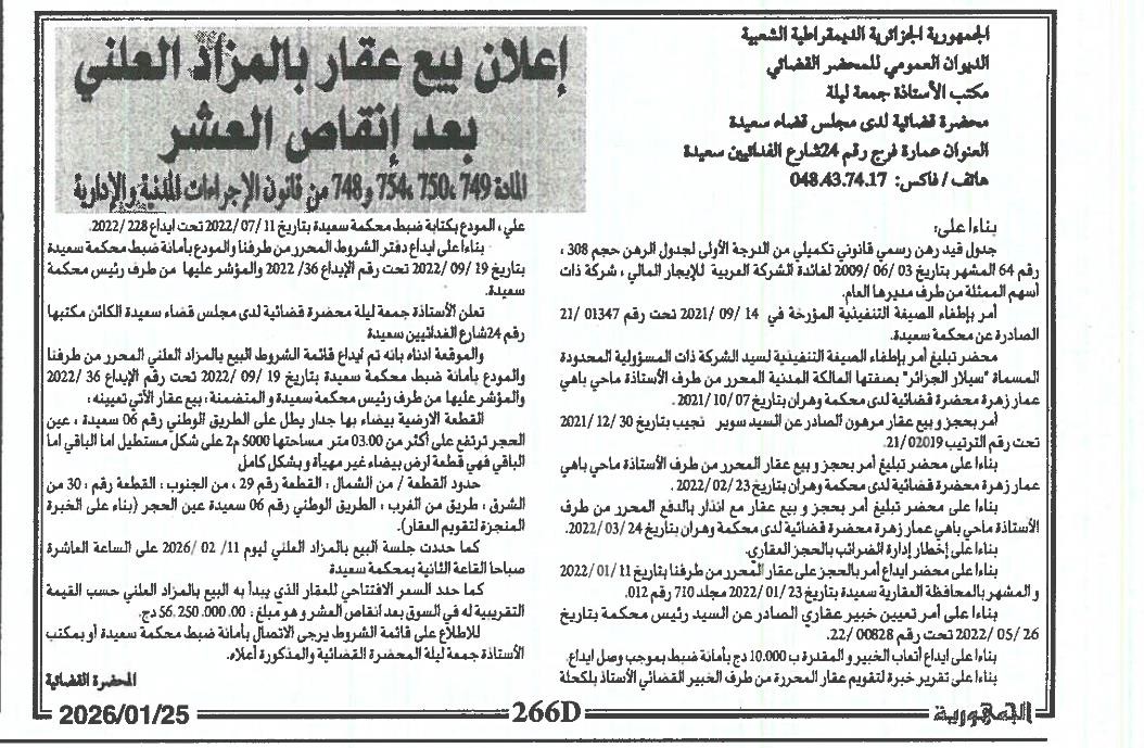 Il sera procédé à la vente au plus offrant et dernier enchérisseur le :