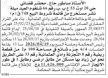 Il sera procédé à la vente au plus offrant et dernier enchérisseur le :