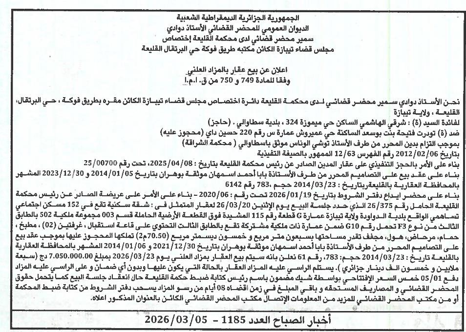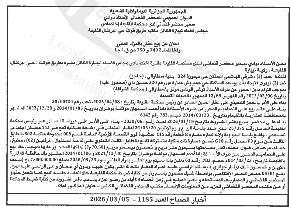 Il sera procédé à la vente au plus offrant et dernier enchérisseur le :