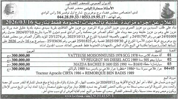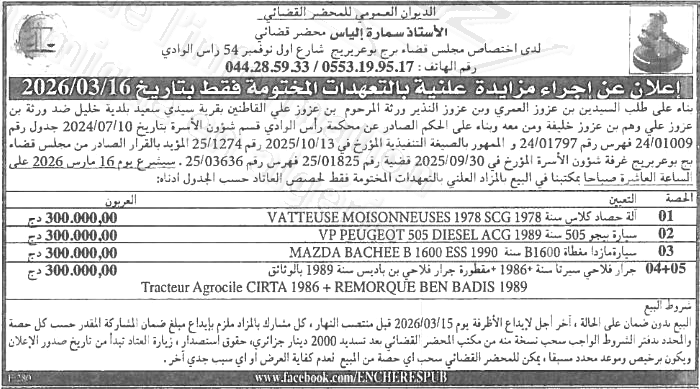 Il sera procédé à la vente au plus offrant et dernier enchérisseur le :