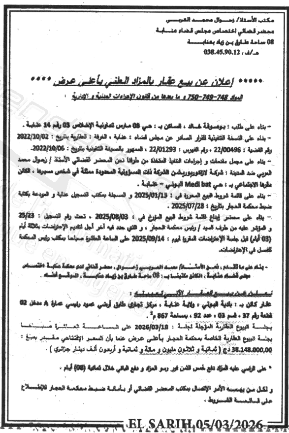 | Wilaya : Annaba | |