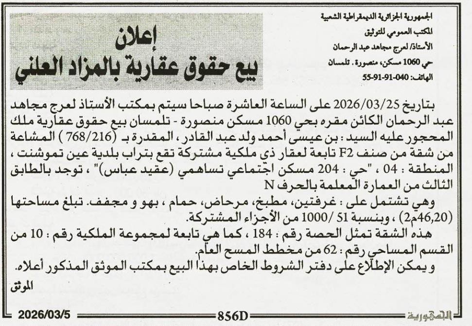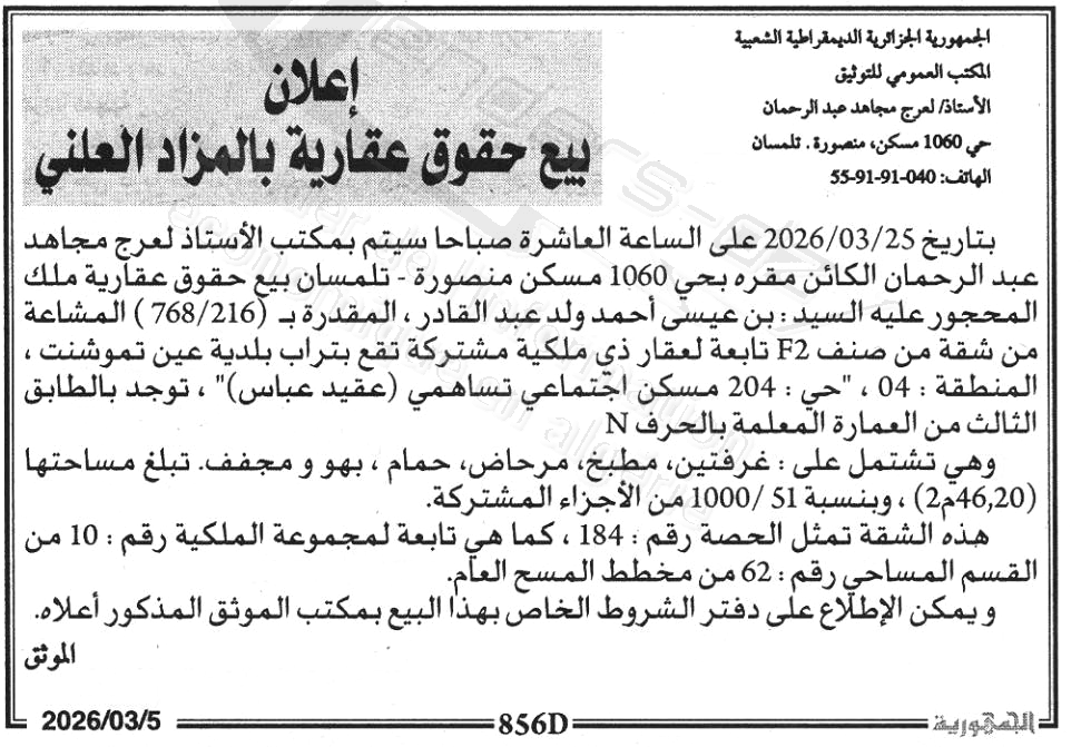 Il sera procédé à la vente au plus offrant et dernier enchérisseur le :