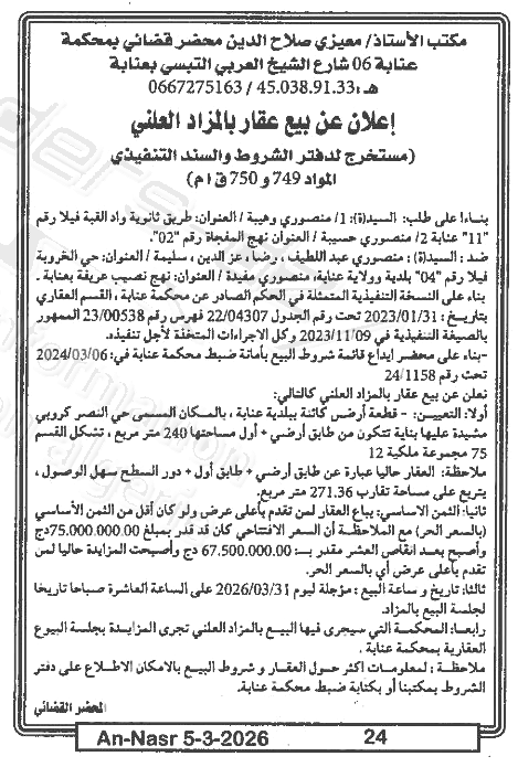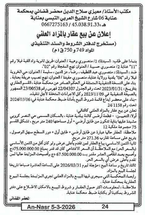 | Paru dans le journal : النصر | |