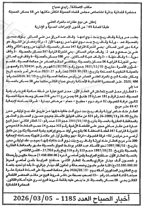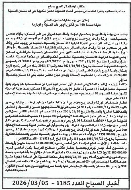 | Paru dans le journal : اخبار الصباح | |