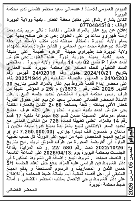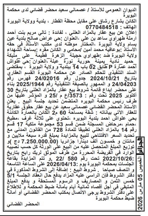 | Paru dans le journal : الجزائر | |