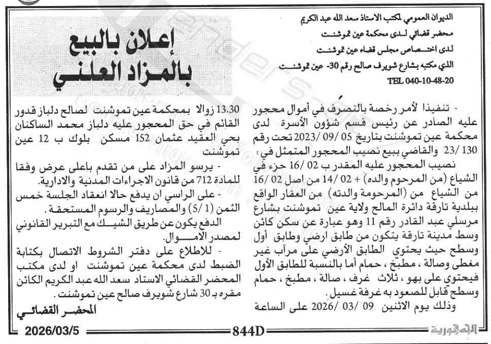 Il sera procédé à la vente au plus offrant et dernier enchérisseur le : 12/03/2026