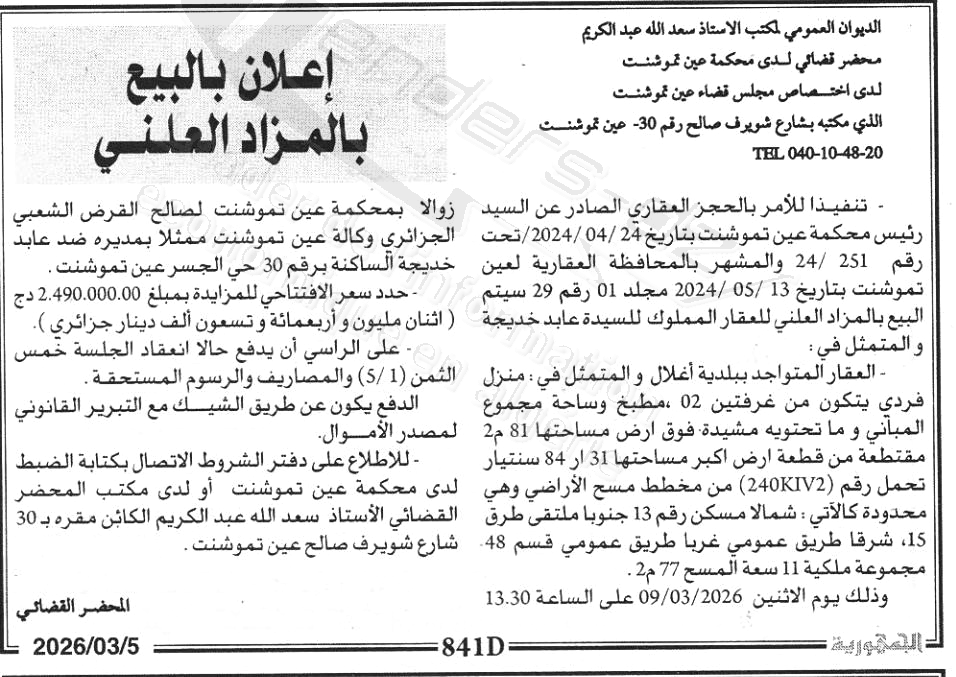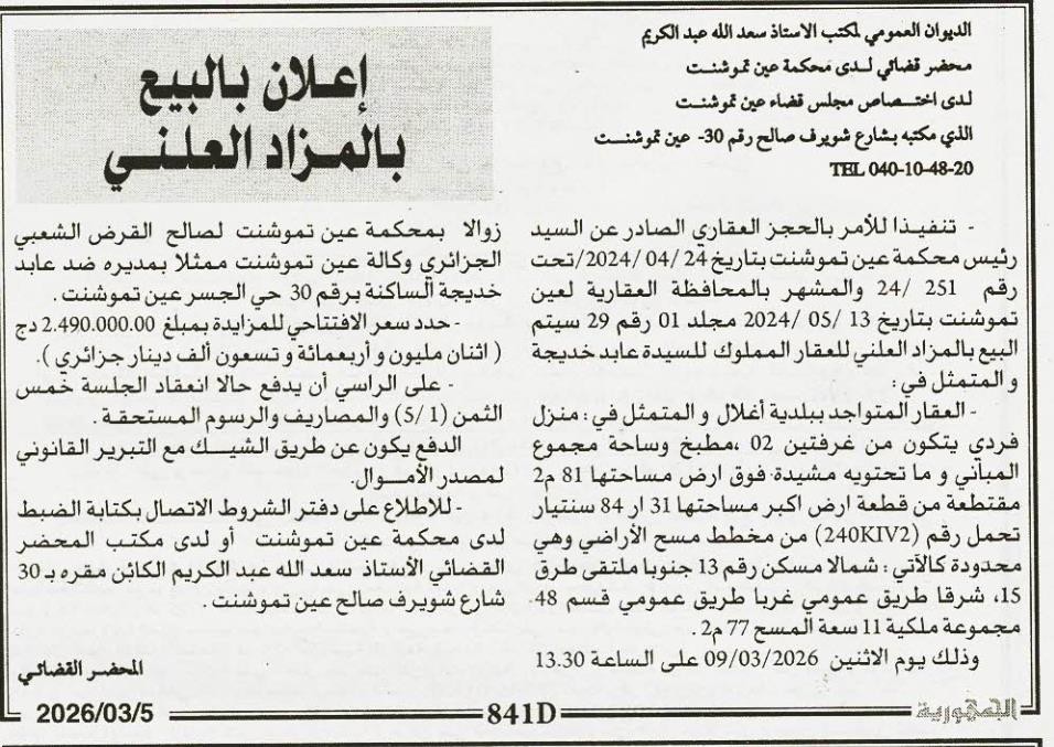 Il sera procédé à la vente au plus offrant et dernier enchérisseur le :