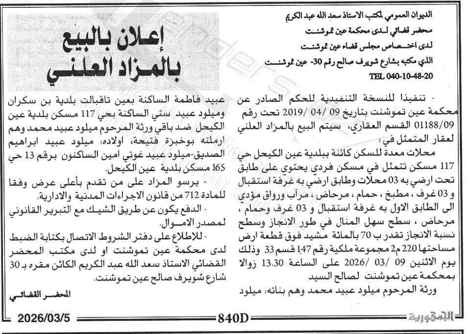 Il sera procédé à la vente au plus offrant et dernier enchérisseur le :