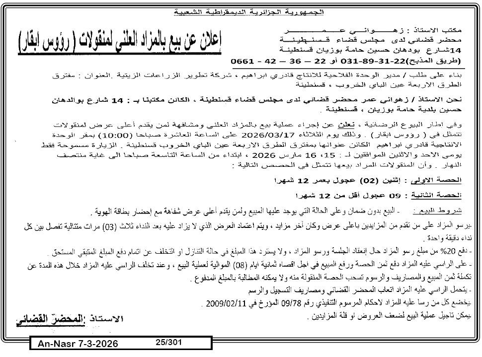 | Paru dans le journal : النصر | |
