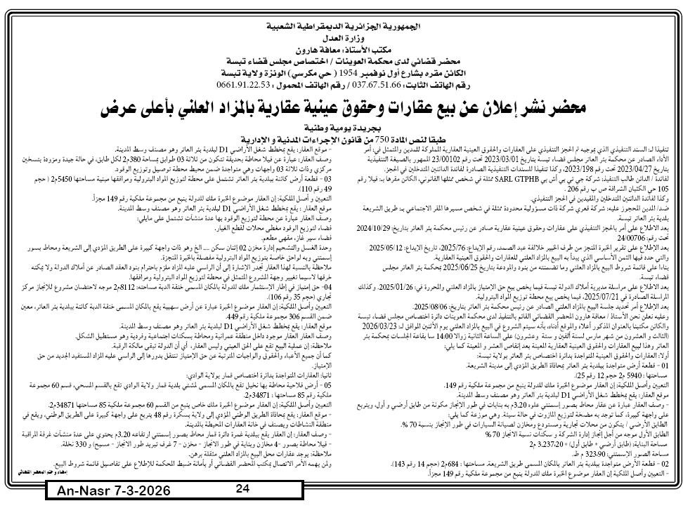 Il sera procédé à la vente au plus offrant et dernier enchérisseur le :