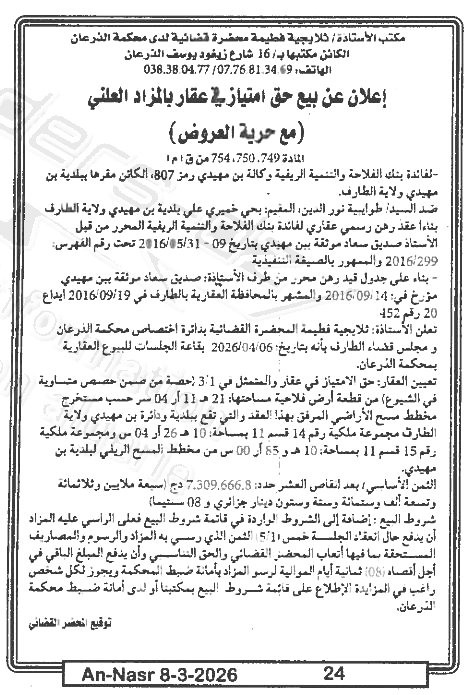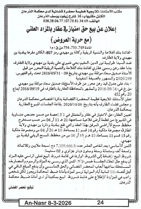 | Paru dans le journal : النصر | |