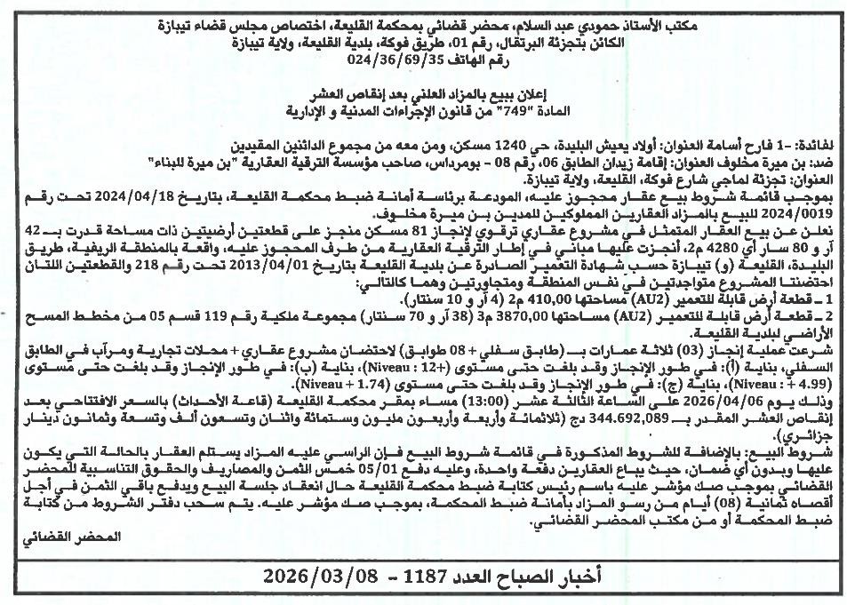 | Paru dans le journal : اخبار الصباح | |