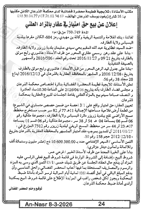 | Paru dans le journal : النصر | |