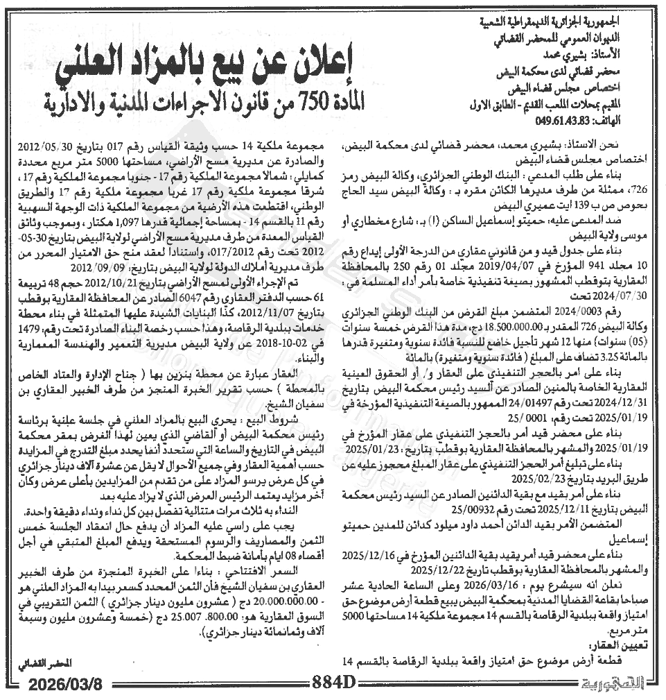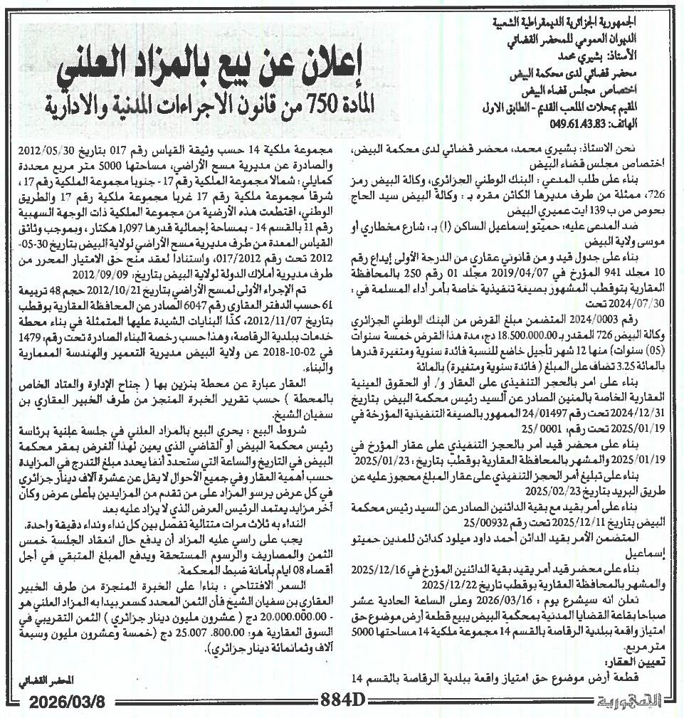 Il sera procédé à la vente au plus offrant et dernier enchérisseur le :