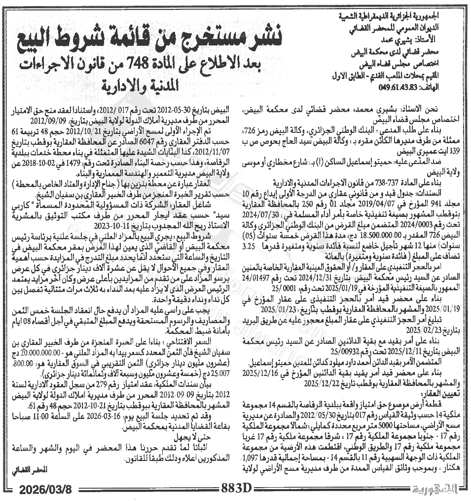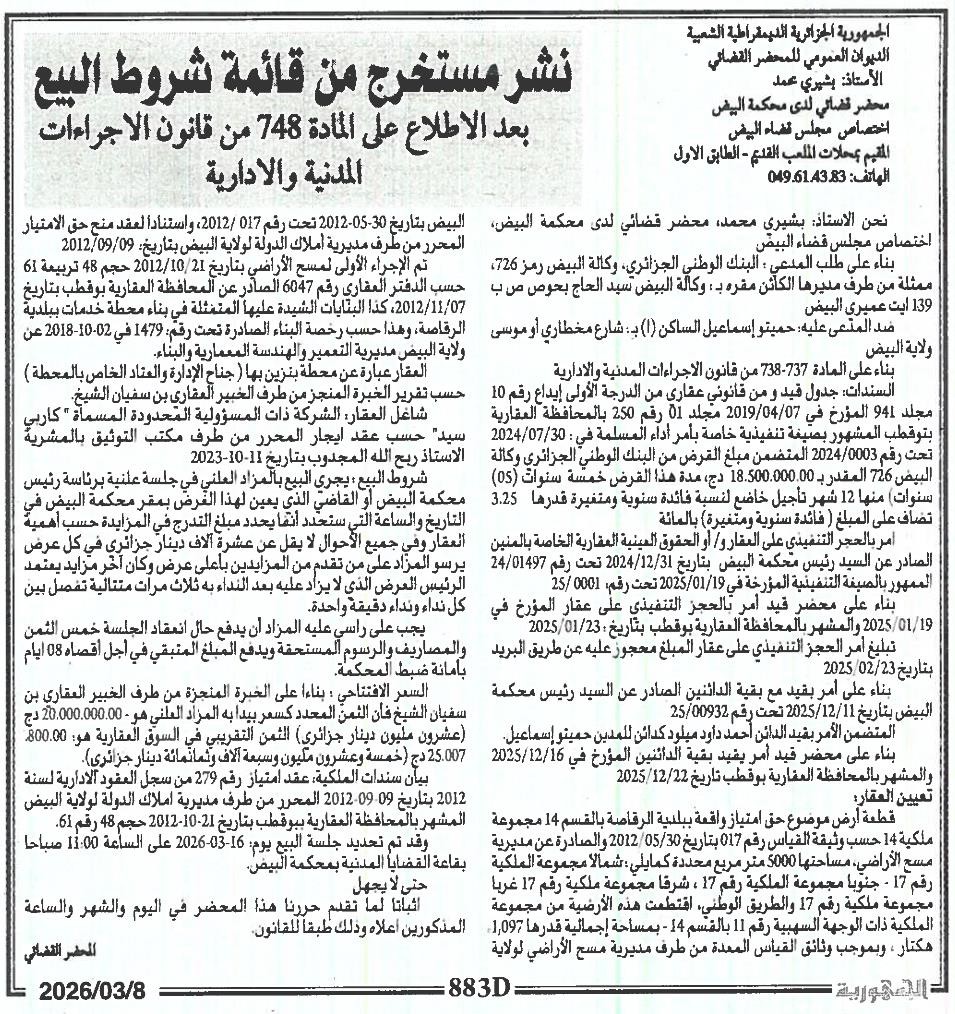 Il sera procédé à la vente au plus offrant et dernier enchérisseur le :