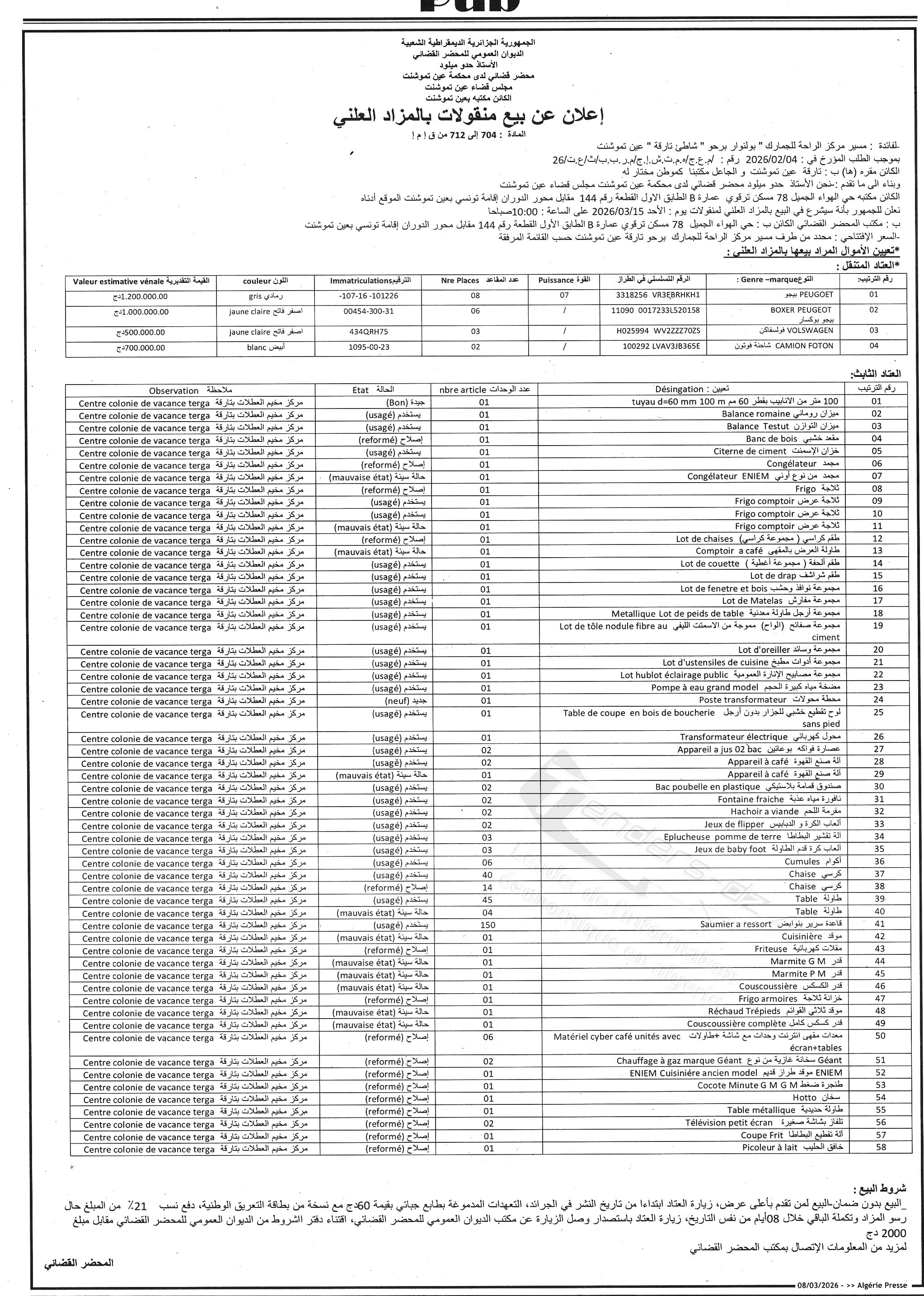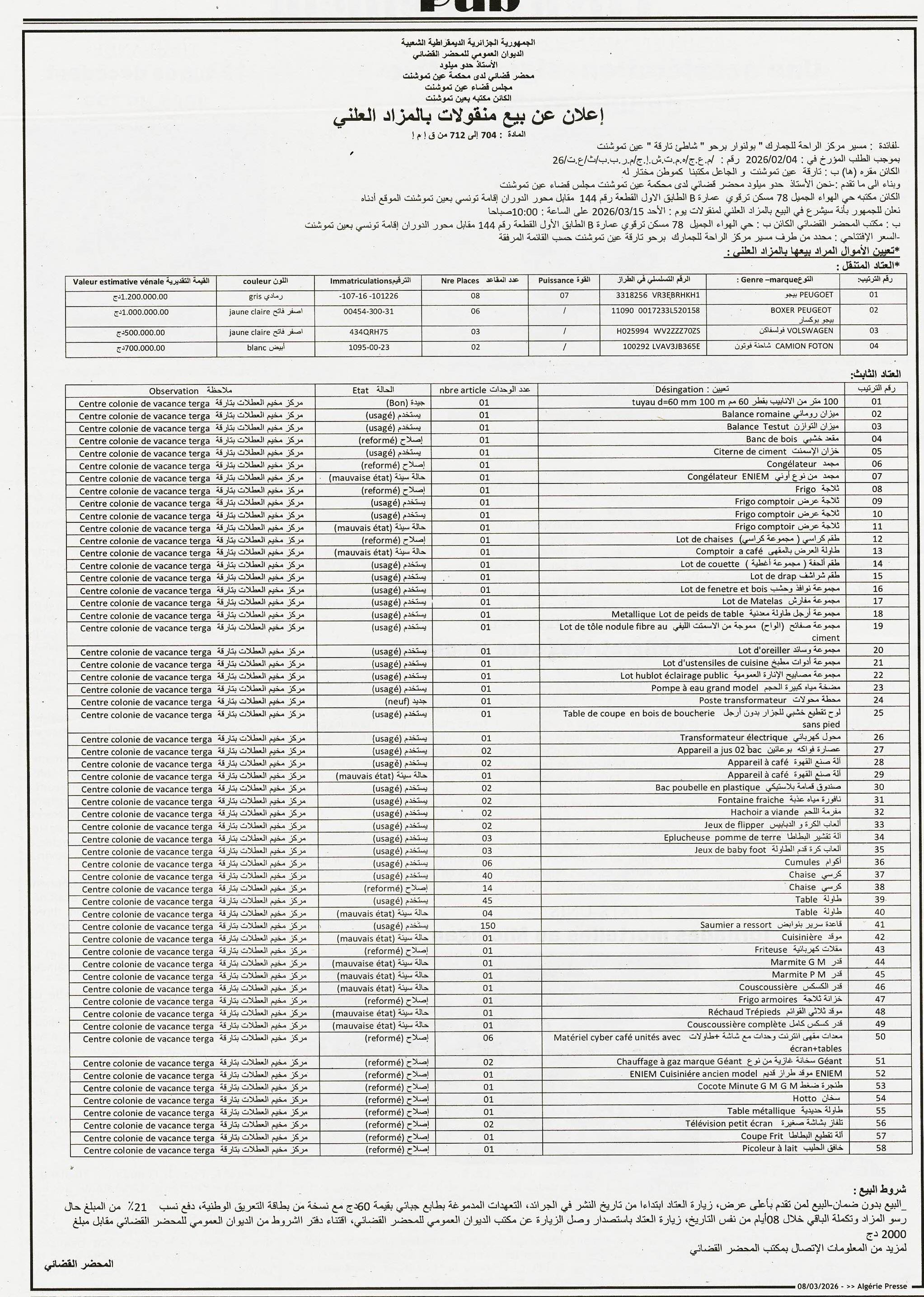 Il sera procédé à la vente au plus offrant et dernier enchérisseur le :
