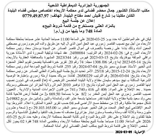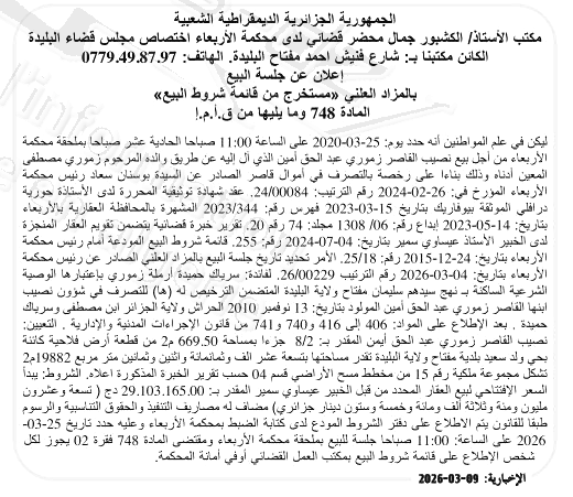 Il sera procédé à la vente au plus offrant et dernier enchérisseur le :
