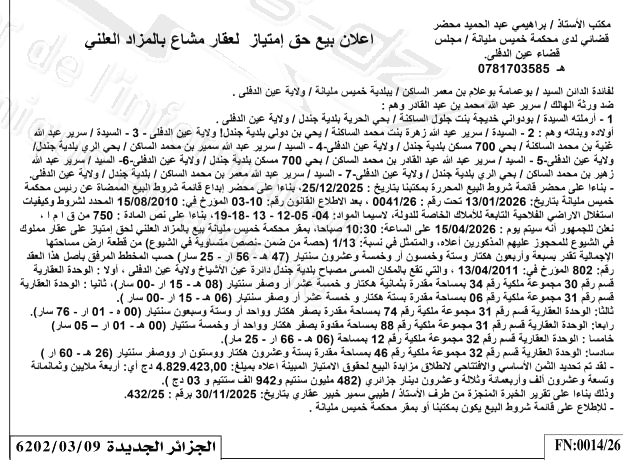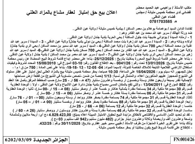 Il sera procédé à la vente au plus offrant et dernier enchérisseur le :