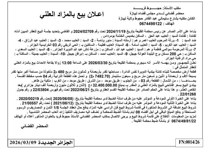 | Date Publication : 09/03/2026 | |