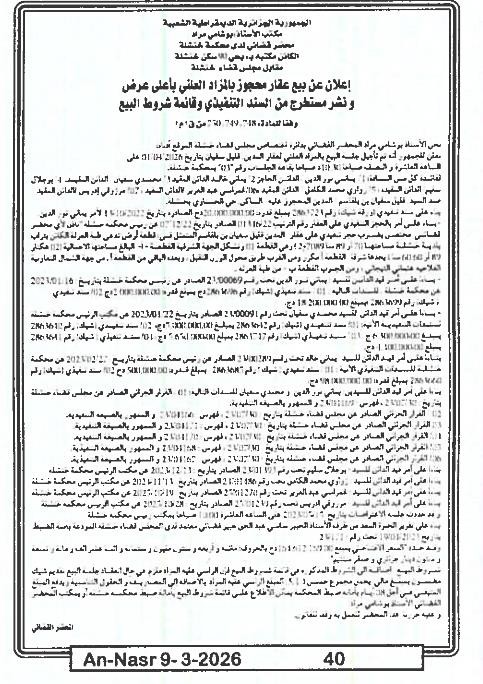 | Paru dans le journal : النصر | |