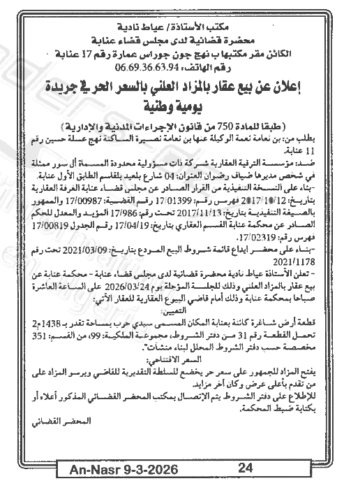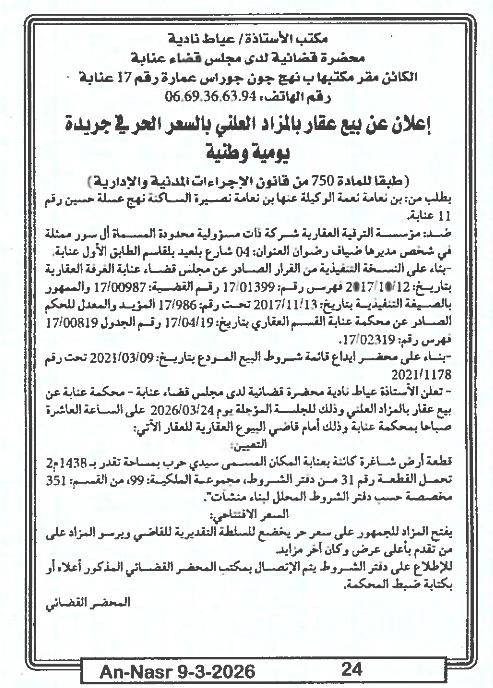 | Paru dans le journal : النصر | |