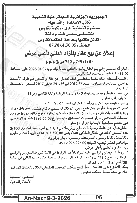 | Date Publication : 09/03/2026 | |