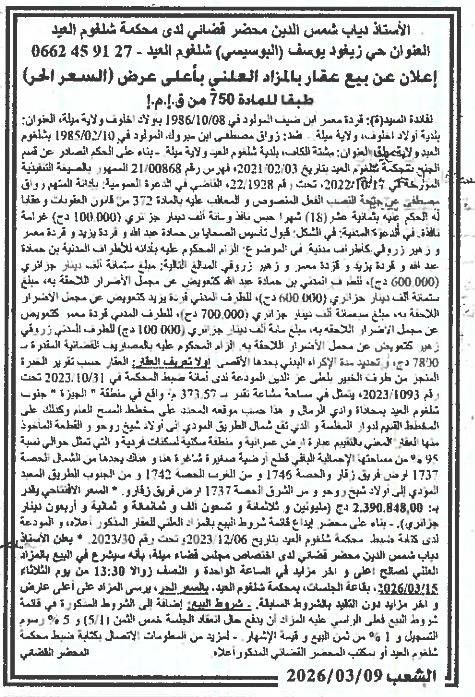 Il sera procédé à la vente au plus offrant et dernier enchérisseur le :