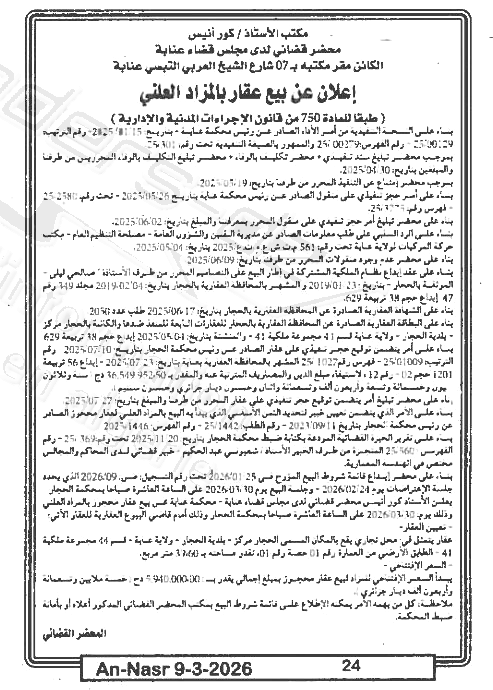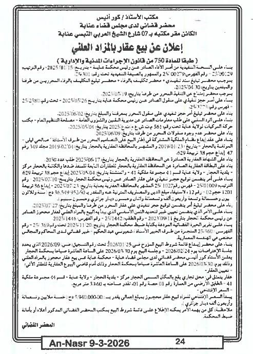 Paru dans le journal : النصر