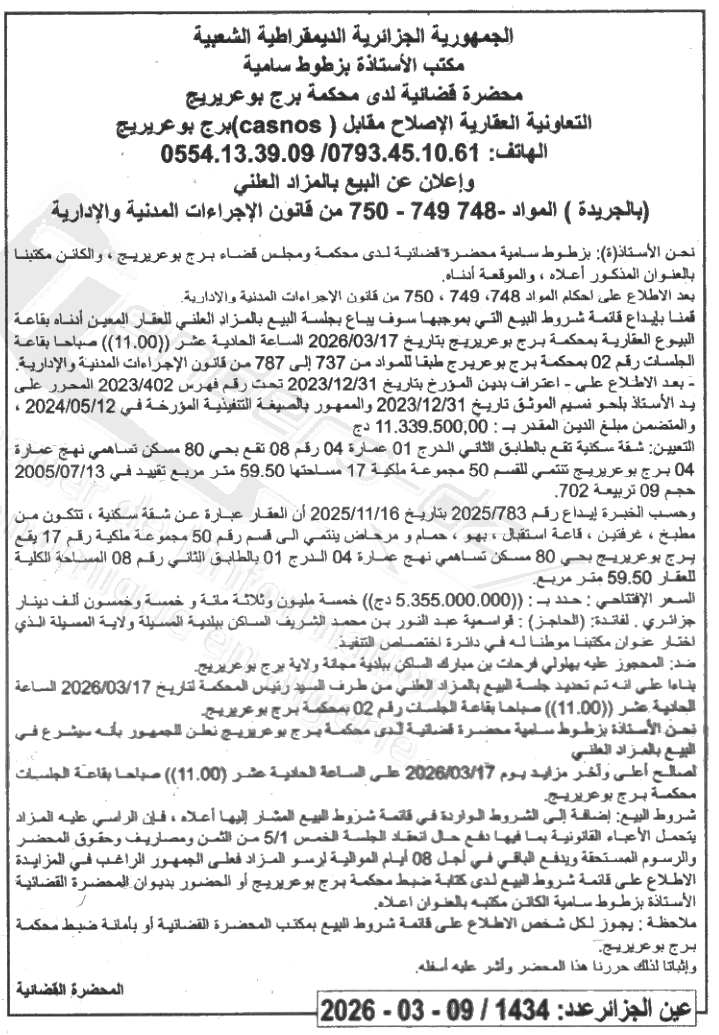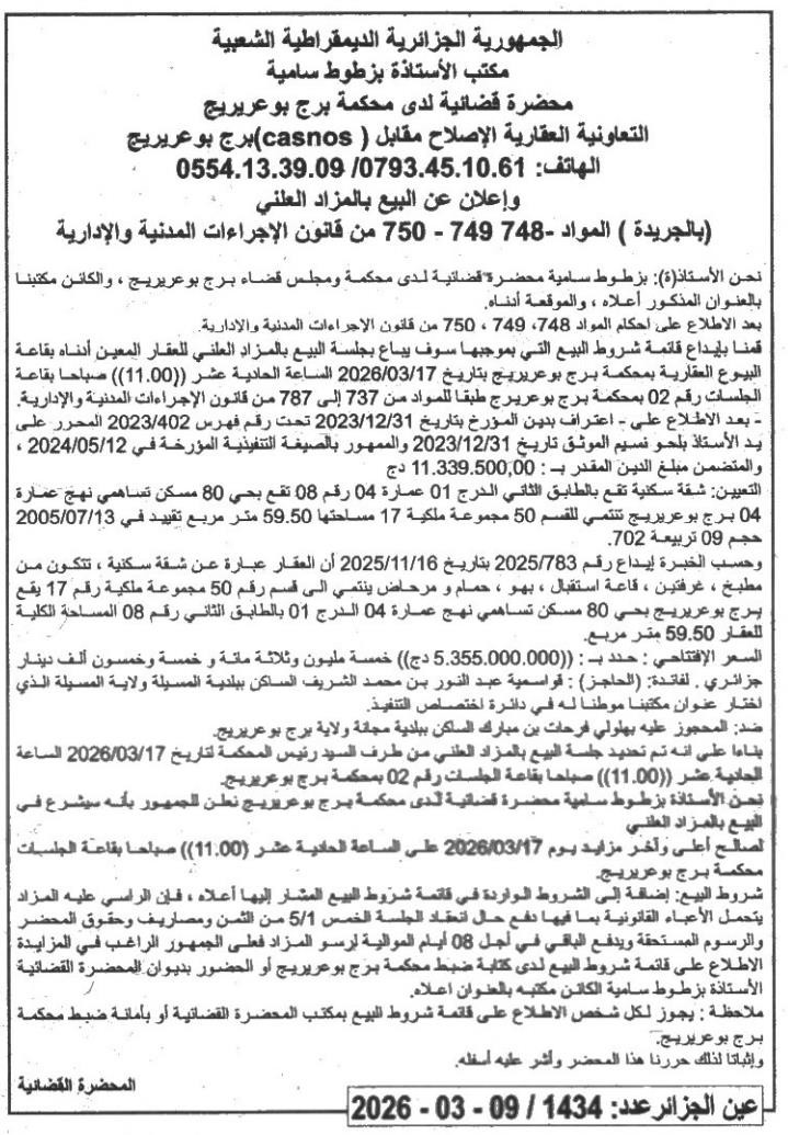 Il sera procédé à la vente au plus offrant et dernier enchérisseur le :