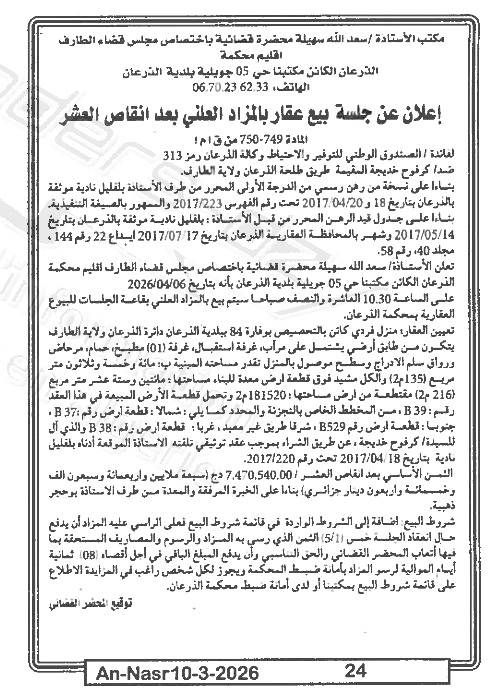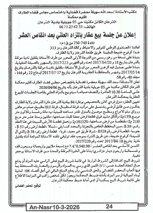 | Paru dans le journal : النصر | |