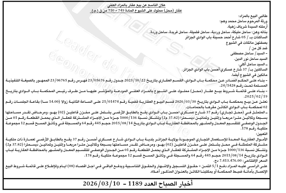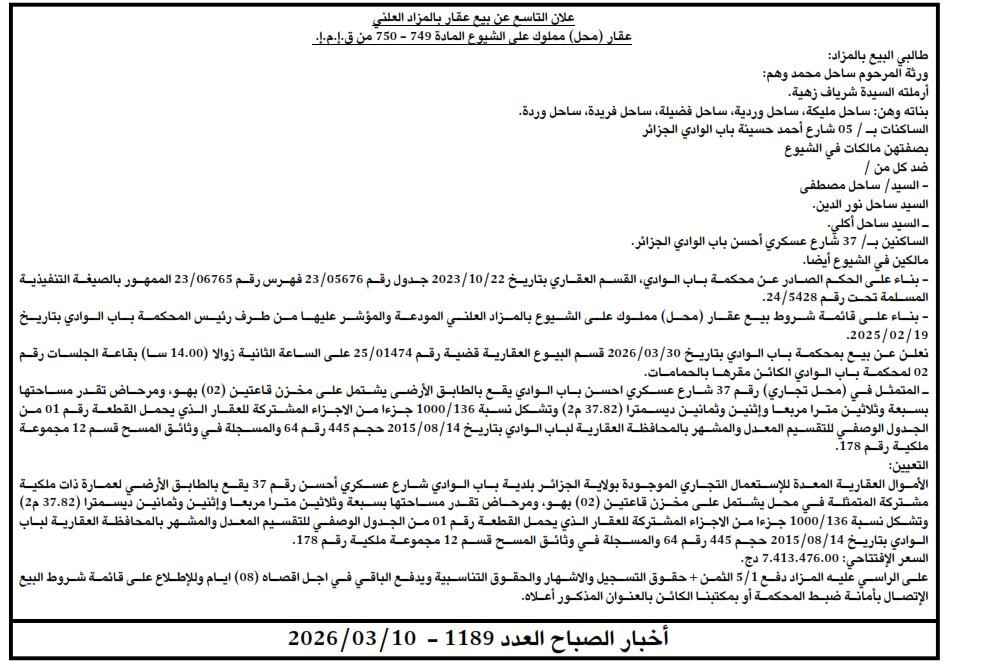 | Paru dans le journal : اخبار الصباح | |