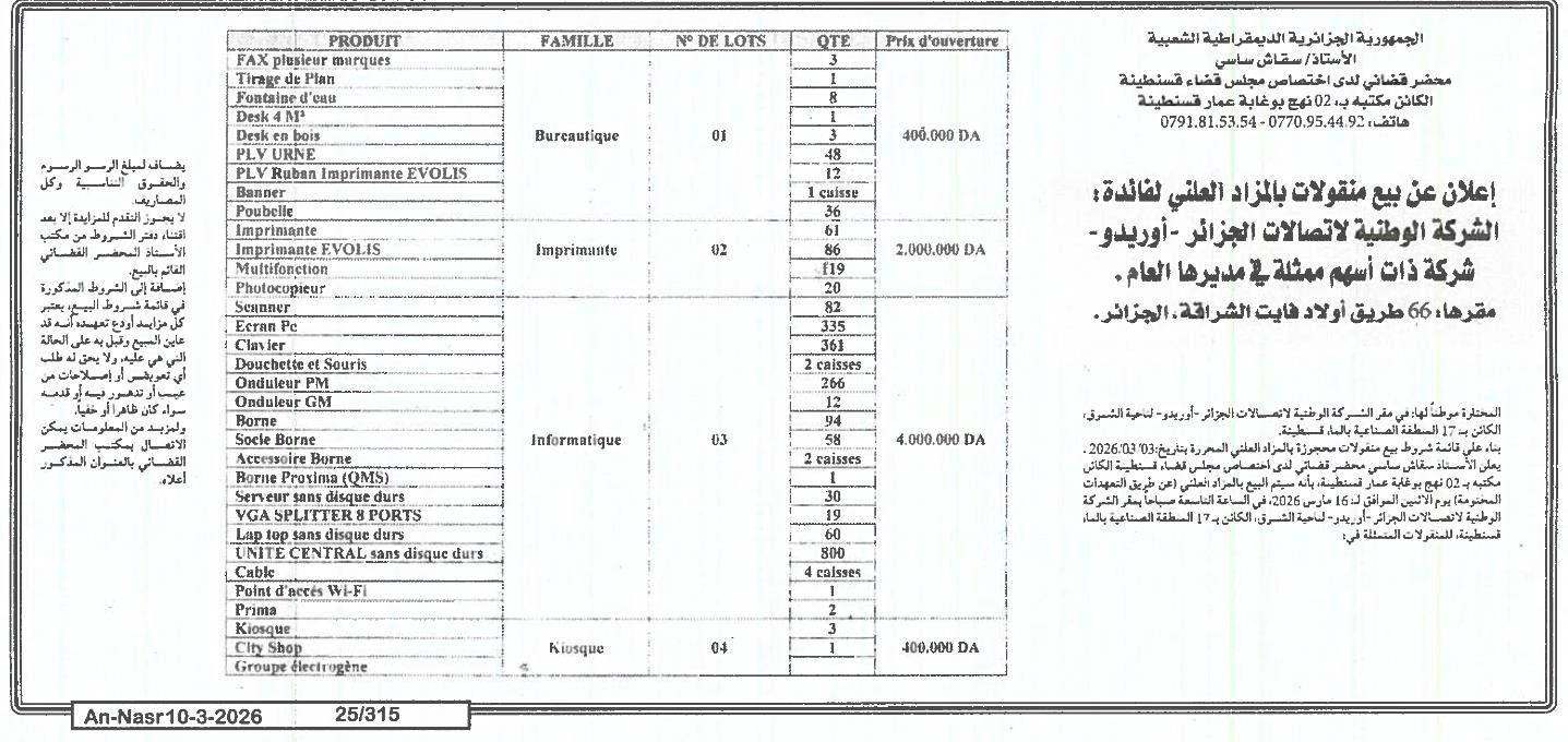 | Paru dans le journal : النصر | |