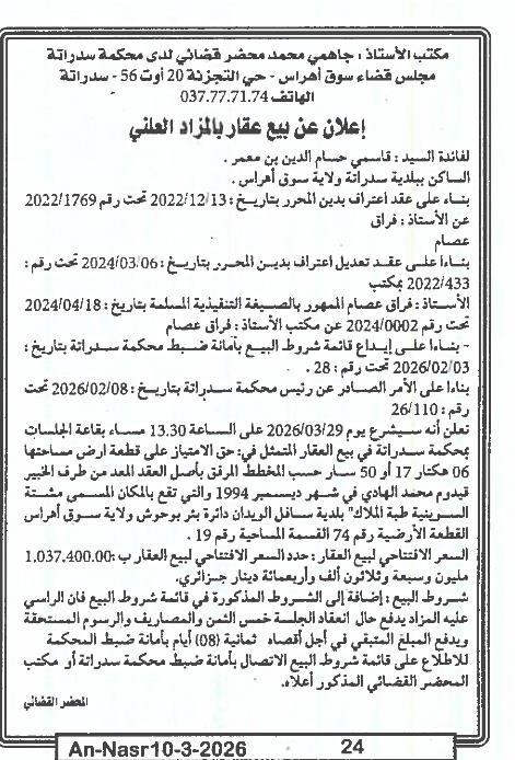 Il sera procédé à la vente au plus offrant et dernier enchérisseur le :