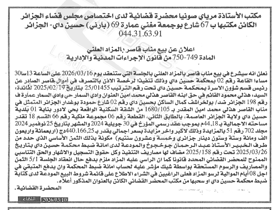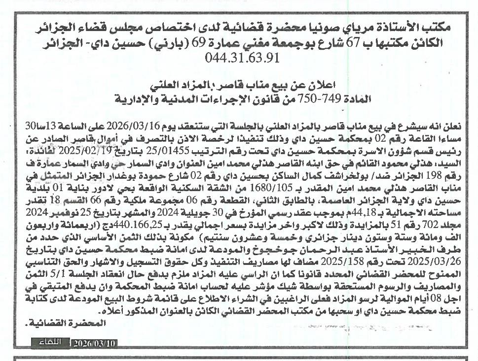 Il sera procédé à la vente au plus offrant et dernier enchérisseur le :