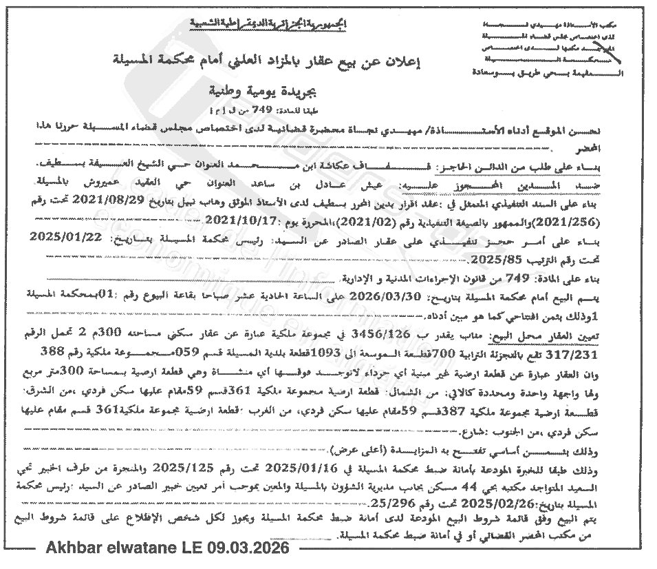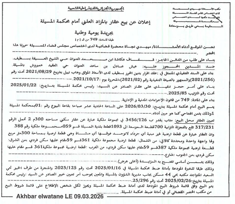 Il sera procédé à la vente au plus offrant et dernier enchérisseur le :