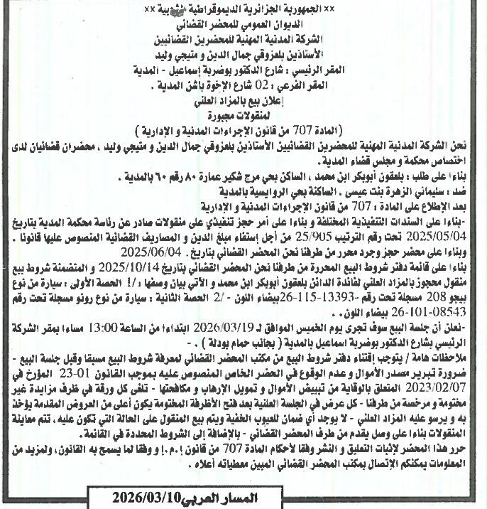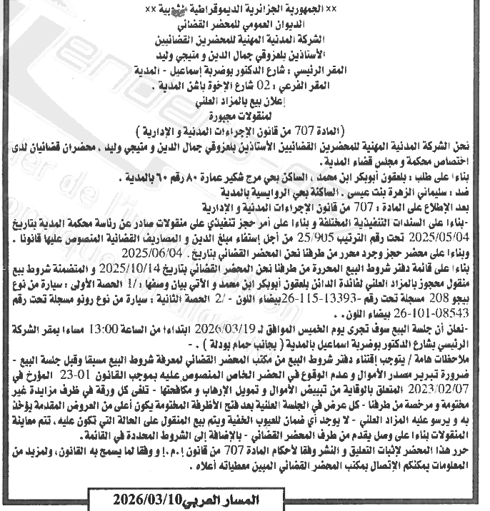 Il sera procédé à la vente au plus offrant et dernier enchérisseur le :